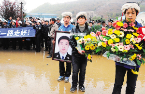 ———追记贵州省兴义市殉职民警张仁政 4月9日,黔西南州举行追悼会,悼念殉职民警张仁政。4月3日,被抽调至兴义市“打黑除恶”社会治安整治专项行动专案组的白碗窑派出所民警张仁政,和同事前往一家小旅社开展侦查时被不法歹徒袭击。被木棒、砖头殴打至重伤的张仁政和同事被紧急送往医院抢救。由于伤势过重,张仁政在医院抢救无效,于7日晚牺牲,年仅26岁。 新华社记者 李劲峰 摄