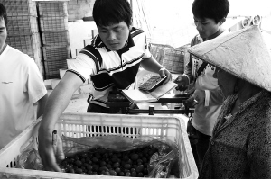 图为姜园村的收购点,村民高兴地出售自己种植的圣女果。 本报记者 杨勇 特约记者 曾高文 摄影报道