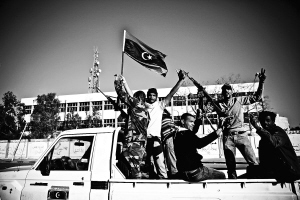 4月10日,在利比亚东部城镇艾季达比耶,反对派士兵在车上欢呼。 当日,正在利比亚参与调停的南非总统祖马说,利比亚领导人卡扎菲已经接受了非盟提出的停火路线图计划。 新华社记者 才扬 摄
