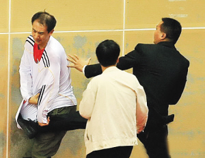 | 在女排联赛总决赛中,保安殴打球迷。 小新发 |