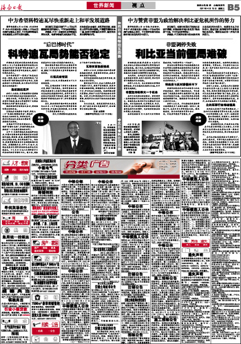 中方希望科特迪瓦尽快重新走上和平发展道路