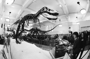 4月13日,观众在美国纽约的美国自然历史博物馆参观“世界最大恐龙展”预展。 “世界最大恐龙展”将于4月16日开始对公众展出,将延续到2012年1月2日。该展览将以一个崭新的角度让观众了解恐龙考古最新的研究成果,展览中还提供互动和实践项目,观众甚至可以亲身体验恐龙化石的发掘过程。 新华社/法新
