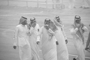4月13日,几名沙特男子走在首都利雅得街道上。 当天,包括首都利雅得在内的沙特阿拉伯大部分地区遭遇沙尘暴袭击。大风卷起沙漠中的黄沙将天空颜色变成黄色,空气中弥漫着一股呛人的气味。利雅得的光线能见度只有30米左右。 新华社记者 王波 摄