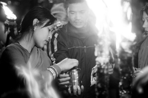 4月14日凌晨,在尼泊尔巴德岗的提米社区,人们举着火把参加尼泊尔历新年庆祝活动。 当日是尼泊尔历2068年新年第一天,当地举行为期数日的庆祝活动,人们互相涂抹红色提卡,深夜举行篝火游行,载歌载舞庆祝新年。 新华社记者 何险峰 摄