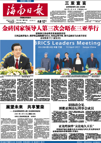 金砖国家领导人第三次会晤在三亚举行