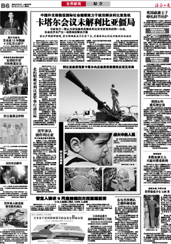 海南日报 世界新闻 014 2011-04-151 2011年04月15日 星期五