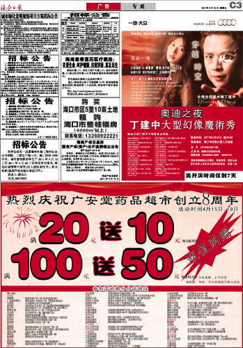 | 海南日报 广 告 019 2011-04-151 2011年04月15日 星期五 |