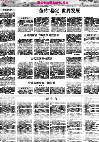 海南日报 聚焦金砖国家峰会·观点 005 2011-04-151 2011年04月15日 星期五
