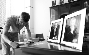 2011年4月16日,工作人员正在裁剪相片。 今年年会期间,论坛秘书处首次为参会嘉宾提供肖像摄影服务,在为嘉宾留下精彩瞬间的同时,也为论坛保留了一批珍贵的影像资料。 本报记者 宋国强 摄