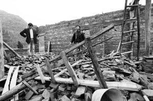 4月16日,在贵州紫云县猫营镇黄土村,一户村民家刚砌好的墙被大风刮倒。 4月15日晚8时左右,贵州安顺市出现雷暴天气,西秀鸡场乡、紫云县猫营镇、坝羊乡、板当镇等受到大风冰雹袭击。 新华社发