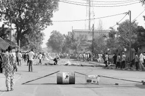 总统卫队一些士兵发动兵变 4月16日,在布基纳法索首都瓦加杜古,人们从设有临时路障的街道经过。 4月14日夜至15日凌晨,布基纳法索总统卫队一些士兵在首都瓦加杜古发动兵变,造成一些人员受伤。随后,布基纳法索总统孔波雷于15日晚在瓦加杜古发布解散政府的总统令。他同时任命特拉奥雷为全国武装部队参谋长,任命凯雷上校为总统安全团的特别参谋长。 新华社/法新
