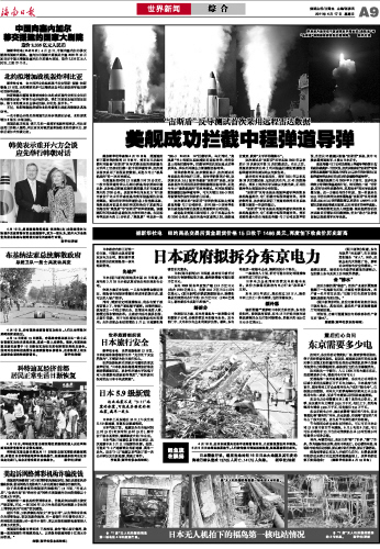 海南日报 世界新闻 009 2011-04-171 2011年04月17日 星期日