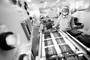 | 4月15日,江苏赣榆县海头镇一家紫菜厂工作人员在加工出口日本的紫菜。