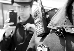 4月18日,一名警官佩戴“执法音视频记录仪”摄像头准备出警。 近日,青岛警方开始为一线民警配备“执法音视频记录仪”,全面推行出警执法全程录音录像,实现随案监督、随警监督、远程网上监督,规范民警执法,强化民警自我约束和自我保护能力。今后,无论是群众对民警的执法过程有任何疑问,“黑匣子”都可将执法过程中的每一个细节记录下来以备事后查询,而当民警执法的准确性和公正性受到质疑时,“黑匣子”也能提供有效证据。 新华社记者李紫恒摄