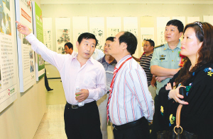 4月17日上午,书画爱好者在观看“爱美无界”白沙艺术扶贫汇报展。当日,海南扶贫书画院揭牌大会在省博物馆举行。 画院将围绕关注农村、关注贫困、关注教育主线,开展系列艺术授课、专家座谈等艺术扶贫帮教活动。 本报记者 苏晓杰 摄