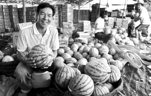 4月17日,万宁市后安镇,正在销售优质西瓜的浙江瓜农赵老板满脸笑容。让老赵高兴的不仅是持续高位的瓜价,更有当地政府组织开展的“护瓜”行动带来的踏实。 正值瓜菜销售季节,万宁市公安部门了解到部分地方存在强买强卖、欺行霸市、收取保护费等违法犯罪行为后,立即开展了“严厉打击瓜霸,保护瓜农利益”的“护瓜”行动,成立“护瓜”巡逻队,并向瓜农承诺,若由于公安部门工作不力造成外地瓜农损失,公安部门负责赔偿,确保种植户的利益。 本报记者 王凯 摄