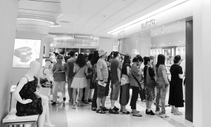 | 4月20日,三亚免税店内购物交钱的游客们排起长队。 本报记者 苏建强 摄 |