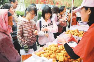 | 市民在品尝儋州的地方小吃“糯米鸡”。 本报记者 苏晓杰 摄 |