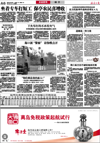 海南日报社新闻信息中心制作维护 地址:海南省海口市金盘路30号新闻大厦 发行部:0898-66810999 广告部:0898-66810888 [