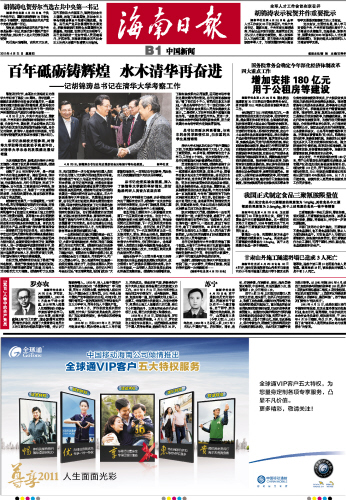 海南日报 中国新闻 009 2011-04-211 2011年04月21日 星期四