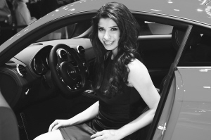4月20日,模特在美国纽约国际车展上展示奥迪TT RS跑车。 当日,2011年纽约国际车展对媒体开放,展览将于4月22日至5月1日对公众开放。 新华社发(吴凯翔摄)