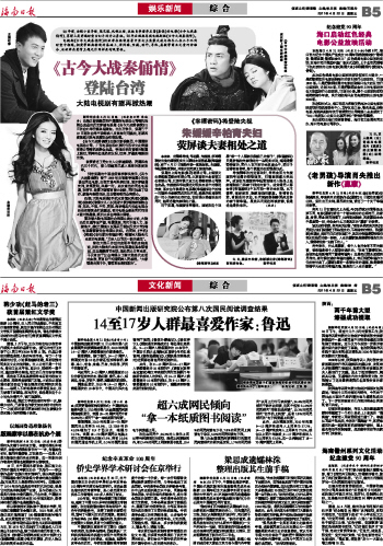 海南日报 娱乐新闻综合/文化新闻综合 013 2011-04-221 2011年04月22日 星期五