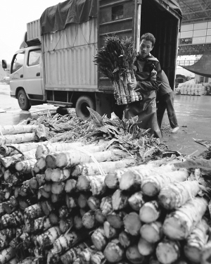 | ←4月22日,在福州闽侯南通蔬菜批发市场,莴笋在等待销售商收购,如果没人收购,第二天将全部销毁。