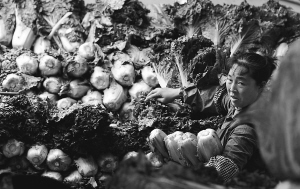 | ↑在贵阳市最大的蔬菜集散地“五里冲农副产品批发市场”,售价为7毛钱一斤的白菜价格已降为3毛钱一斤,其他叶菜类蔬菜降幅也在三至五成之间。 新华社发 |