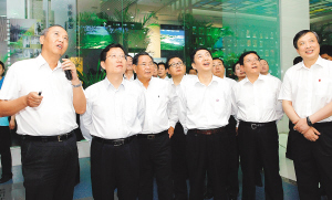 | 4月23日,在省委书记、省人大常委会主任卫留成的陪同下,青海省委书记、省人大常委会主任强卫(前排左二),青海省委副书记、省长骆惠宁(前排右三)在省规划展览馆考察。 本报记者 宋国强 摄 |