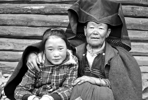 | 这是云南省丽江市宁蒗彝族自治县永宁乡温泉村委会刘家村村民小组的彝族老人邱务杰和她的小孙女邱长英在家中合影。新华社发 |