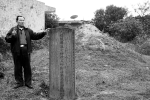 | 谢越勤在谢渥墓前讲述谢渥生平 |