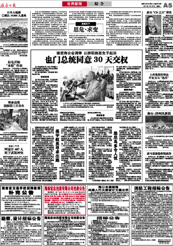 海南日报 世界新闻 005 2011-04-251 2011年04月25日 星期一