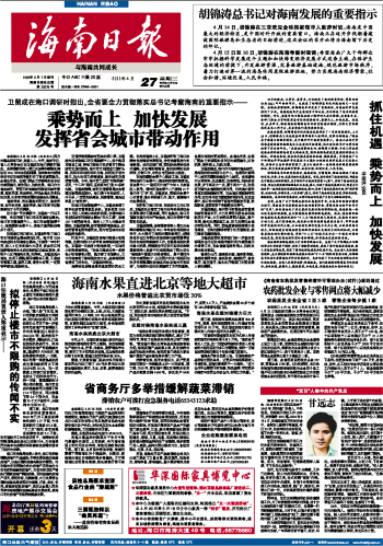 海南日报 头版 001 2011-04-271 2011年04月27日 星期三