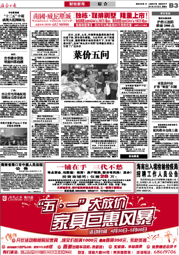 海南日报 财经新闻 011 2011-04-291 2011年04月29日 星期五