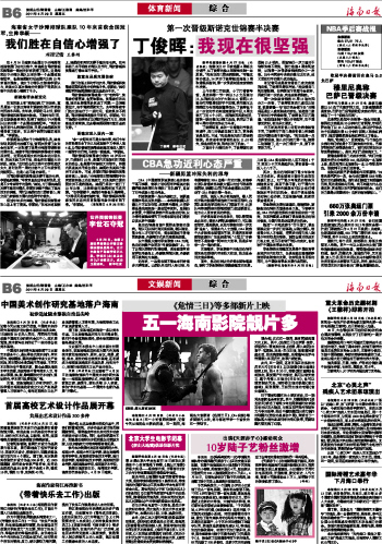海南日报 体育新闻/文娱新闻 014 2011-04-291 2011年04月29日 星期五