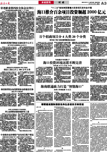 海南日报 本省新闻 003 2011-04-291 2011年04月29日 星期五