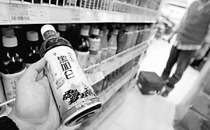| 换装后的某品牌饮料每瓶从500ml变成了450ml,价格未变。 吴恺 摄 资料照片