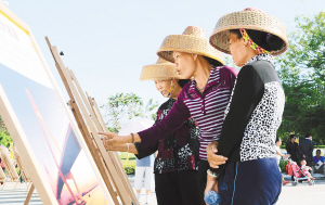 陵水观众在巡展现场合影留念。 海南省图片社提供