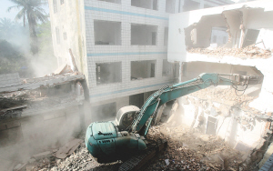 5月5日,海口市文明东路贯通工程现场,施工人员正在加紧施工。 据了解,文明东路贯通工程东起滨江西路,西接文明东路,红线宽40米,全长约532米,这条道路是海口市今年年底前必须贯通的五条断头路之一。 本报记者 李英挺 摄