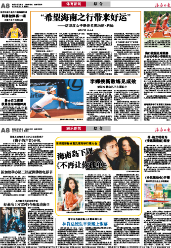 海南日报 体育新闻/娱乐新闻 008 2011-05-071 2011年05月07日 星期六