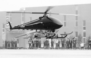 5月7日,由山东潍坊天翔航空工业有限公司与中航工业西安飞行自动控制研究所等单位联合研制的V750无人直升机在山东潍坊试飞成功。据了解,V750无人直升机起飞重量为757公斤,任务载荷大于80公斤,最大平飞速度为每小时161公里,最大航程为500公里,续航时间大于4小时。该机可外控飞行(人工遥控),也可以程控自主飞行。V750无人直升机控制半径超过150公里,使用升限为3000米。V750无人直升机的研制成功填补了我国中型无人直升机的空白。 新华社发(孙树宝 摄)