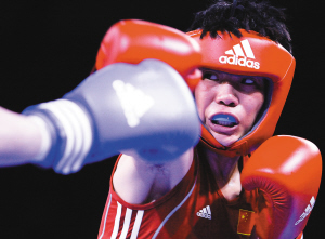 5月7日,在2011年亚洲杯女子拳击赛48公斤级比赛中,代表中国参赛的海南选手孙孟莹在与朝鲜队选手的比赛中,以5:6负于对手。 本报记者 宋国强