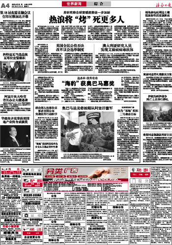 海南日报 世界新闻综合 004 2011-05-081 2011年05月08日 星期日