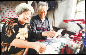 | 程方喜和老伴翻看步行去北京时留下的照片,路途上的辛苦如今成了两人美好的回忆。 |