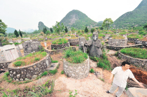 靖江王陵文物管理处副主任曾祥忠在介绍靖江王陵被私坟侵占的情况(4月28日摄)。广西桂林市靖江王陵是国家级重点文物保护单位,拥有明朝传世280年的桂林11世靖江藩王、王妃和将军、大臣的超级墓葬群。如今的靖江王陵乱象丛生:王陵核心保护区内冒出了6万多座私坟,王家陵墓面目全非。 新华社记者 陈瑞华 摄