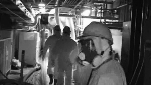 | 东电工作人员进入福岛第一核电站一号机组涡轮机房。 新华社/法新 |
