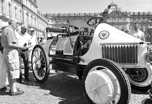 5月8日,在德国斯图加特,人们观看参加汽车巡游活动的一辆保时捷汽车。 当日,作为纪念汽车诞生125周年的“2011汽车之夏”活动的重头戏,“汽车125周年”巡游活动在德国斯图加特举行,由奔驰、奥迪、保时捷三家厂商生产的125辆新老款式车辆参加环城巡游,并停放在宫殿广场上供公众参观。 新华社记者 马宁 摄