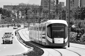 5月8日,在阿尔及利亚首都阿尔及尔,一辆有轨电车运行在轨道上。 当天,阿尔及尔首条城市有轨电车线的首段开始运营。该段轨道交通线长7.2公里,设13站。阿尔及尔是北非地中海南岸最大的城市之一,也是阿尔及利亚的政治、经济和文化中心。 新华社发