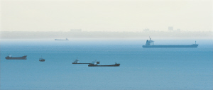 5月9日下午4时左右,海口市沿海出现海市蜃楼奇观,持续一个小时左右。海市蜃楼是一种光学现象。春夏、夏秋之间,万里无云,海水与水面的空气层易出现较大温差。水温低于空气,这时水面的气层与空中的气层密度便发生较大差异,光线通过密度不同的气层便会发生折射或全反射,就形成了海市蜃楼奇观。图中远景为海市蜃楼奇观。 新华社记者 郭程 摄