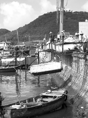 今天,三亚市分别派出以市海洋与渔业局、市安全生产监督管理局、市交通运输局为责任单位的3个行动小组,分别开展对港口的整治行动。记者了解到,今天3个行动小组分别拆除1座非法搭建的临时码头(见左图,本报记者程范淦摄)和1个平台,清理沉船和摩托艇各1艘,责令3家违规经营的企业在一个月内自行拆除临建的码头和平台;对49艘供油船舶进行审查并下发《整治供油市场通知书》,同时要求外港籍船舶三天内离开三亚港,要求证件不全的船舶在30天内完善相关手续证照;此外,行动小组还扣押了33艘小型交通营运船。